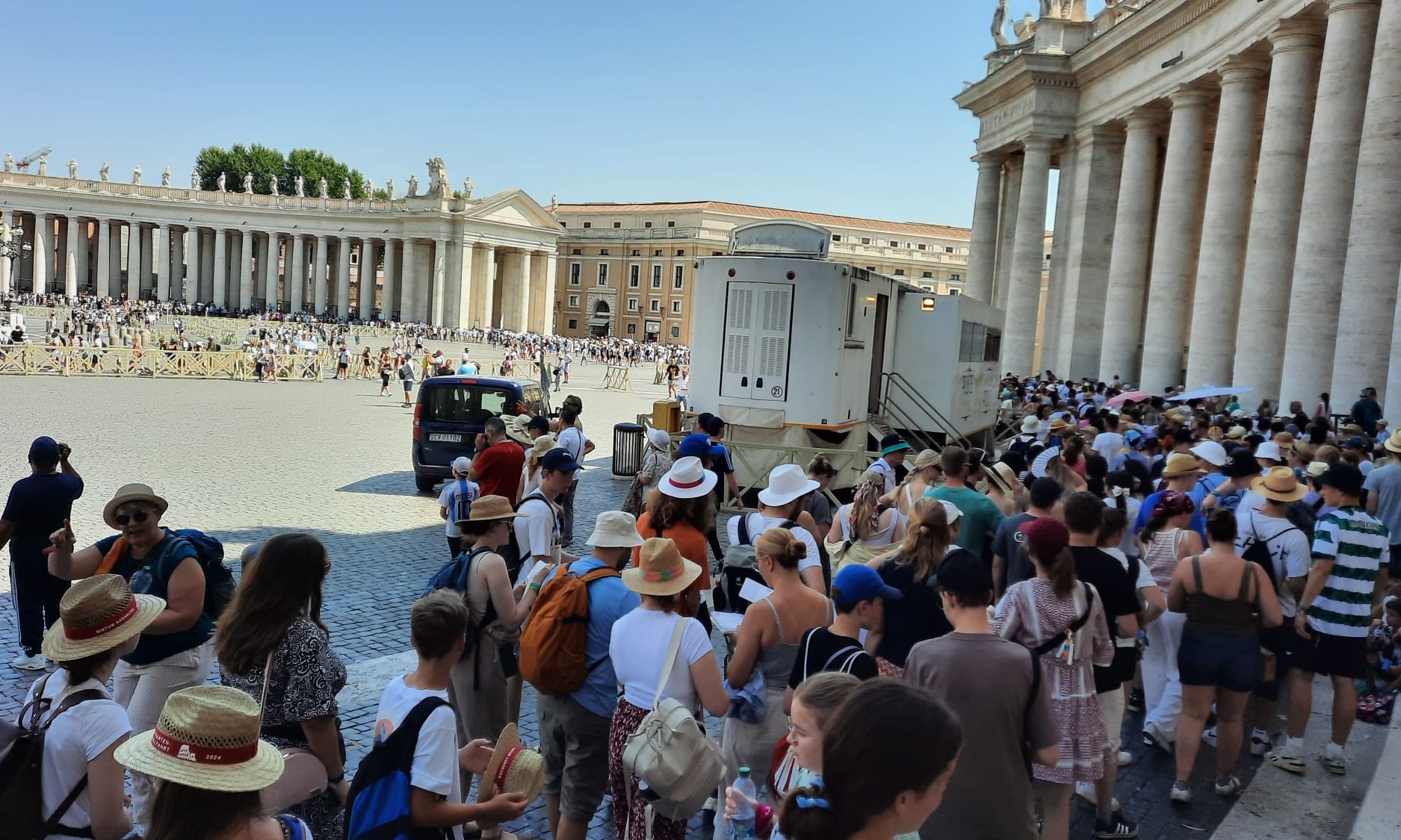 Am 4. Tag besuchen unsere Minis den Petersdom, aber erst einmal ist Anstehen angesagt... -