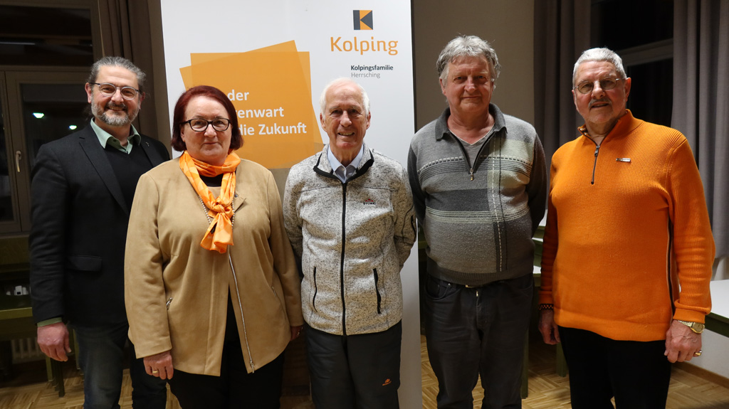 Der neu gewählte Vorstand der Kolpingsfamilie Herrsching (v. l.): Vorsitzender Konrad Rausch, Kassier Josef Zusel, Schriftführer Werner Pöllmann, stellv. Vorsitzende Rosi Merkhoffer, Präses Simon Rapp